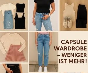 Was brauche ich wirklich, um mich stilsicher und „gut angezogen“ zu fühlen? Dieser Frage gingen die Schüler:innen vom Cosmetic College Schaumburg im Projekt Capsule Wardrobe nach. Die „Kapselgarderobe“ bezeichnet eine minimalistische Sammlung von Kleidungsstücken, die gut miteinander kombinierbar sind und deshalb zahlreiche Outfits für verschiedene Anlässe ergeben.