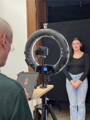 Die angehenden Kosmetikerinnen bereiteten sich auf ein Shooting unter dem Motto „Black and White“ vor. Sie brachten helle und dunkle Kleidungsstücke mit. In Gruppen eingeteilt, fotografierten die GTAs unter der Anleitung von Helmut Rinne jeweils zwei bis drei Schülerinnen vor dunklen, hellen und farbigen Hintergründen. Ziel der High-Key- und Low-Key-Aufnahmen war die Herausstellung von Details, wie Augen oder Mund. Das Make-up der Modelle übernahmen die Kosmetikerinnen selbstverständlich selbst.