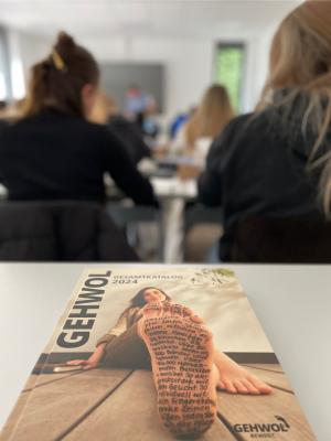 Das Cosmetic College arbeitet sowohl bei den Modellbehandlungen als auch im Unterricht mit bekannten Markenprodukten aus dem Bereich Pflege und dekorative Kosmetik. Seit Jahren kommen im Bereich kosmetische Fußpflege Produkte der Firma Eduard Gerlach, besser bekannt unter der Marke Gehwol, zum Einsatz. Um die Produkte kennenzulernen und diese gut einsetzen zu können, fand vor einiger Zeit eine Produktschulung für die Schüler:innen im zweiten Ausbildungsjahr statt.