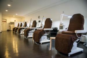 Ein luxuriöses Ambiente - kombiniert mit einer modernen technischen Ausstattung und dem gewissen Wohlfühlfaktor - steht im fachpraktischen Schulungsbereich im Fokus. Der fachpraktische Unterricht findet in Kleingruppen statt, um jede/n Auszubildende/n optimal und individuell zu betreuen und somit eine qualifizierte Ausbildung zu gewährleisten. Dazu stehen den Auszubildenden pro Praxisraum jeweils acht bis zehn moderne Arbeitsplätze zur Verfügung.